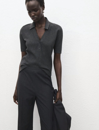 Dieses Oberteil aus Feinstrick zeichnet sich durch eine figurbetonte Silhouette und einen Hemdkragen mit Knopfleiste aus. Die kurzen Ärmel ergänzen das vielseitige Design und machen es zu einer stilvollen Wahl für verschiedene Anlässe. Es ist auch in Plus-Grössen erhältlich.