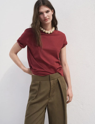 Dieses kurzärmlige T-Shirt mit geradem Schnitt ist eine vielseitige Ergänzung für jede Garderobe. Der klassische Rundhalsausschnitt macht es einfach, es mit jedem Outfit zu kombinieren. Ein schlichtes, zeitloses Design.