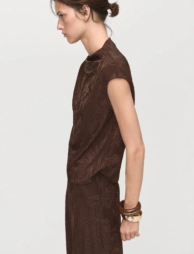 Dieses Top aus fliessendem Jacquard hat ein gerades Design und einen schmeichelhaften Drapierkragen. Die kurzen Ärmel sind mit einem gerafften Schulterdetail versehen, das einen Hauch von Eleganz verleiht.