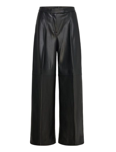 Diese Hose aus geschmeidigem Kunstleder besticht durch eine moderne Silhouette mit weitem Bein. Die lange Hose verfügt über eine bequeme, mittelhohe Taille, praktische Seitentaschen und eine stilvolle Bundfalte. Ein verdeckter Knopf-, Haken- und Reissverschluss sorgt für einen nahtlosen Verschluss, während das Innenfutter den Tragekomfort und die Passform verbessert.