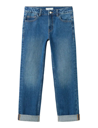 Regular fitDiese lange Jeans mit geradem Bein ist aus Stretch-Baumwolle gefertigt und hat einen umgeschlagenen Saum für einen stilvollen Touch. Entworfen mit klassischen Gürtelschlaufen, einem Reissverschluss mit Knopfverschluss, zwei Seitentaschen und zwei aufgesetzten Taschen auf der Rückseite. Diese Jeans ist perfekt für die Einschulung und darüber hinaus.