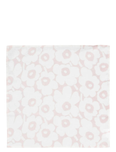 This textile napkin features the Mini Unikko pattern, which is printed in Helsinki. The napkin has stitched edges.