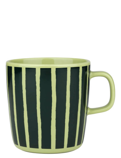 The large green Oiva mug features the Piccolo pattern decal. It is dishwasher, oven, microwave, and freezer safe.