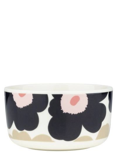 The Oiva bowl with Unikko pattern is made of white stoneware that is dishwasher, oven, microwave and freezer proof.