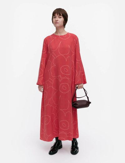 Dieses Maxikleid besticht durch einen auffälligen Blumendruck, der es zu einer markanten Ergänzung für jede Garderobe macht. Die langen Ärmel und die fliessende Silhouette bieten sowohl Komfort als auch Stil, perfekt für den Tag oder Abend.