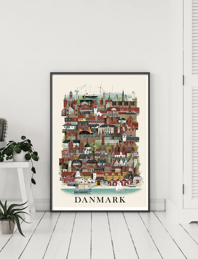 What is the essence of denmark? in this poster you will find everything from medieval monasteries, hamlet’s castel and magnificent cathedrals to modern danish architecture by world famous architect henning larsen. but these are only a fraction of all the buildings that are represented in this poster, as you will also find a common hot dog stand as well as a modern bridge. go discover and you will find all the characteristic buildings that are all very danish in their own way.