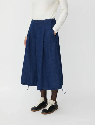Dieser Jeansrock bietet dank seines bequemen elastischen Bundes eine entspannte Passform und einen dezent gerafften Saum. Das Design bietet sowohl Bewegungsfreiheit als auch einen Hauch von lässiger Eleganz.