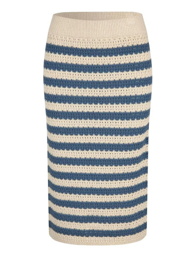 Horizontale Streifen definieren diesen Strickrock und erzeugen ein optisch ansprechendes Muster. Das Design bietet eine bequeme Passform und einen vielseitigen Stil, der sich leicht mit verschiedenen Oberteilen für unterschiedliche Anlässe kombinieren lässt.