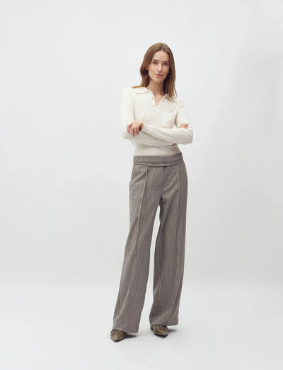 Eine zeitlose Silhouette zeichnet diese Hose aus und macht sie zu einer vielseitigen Ergänzung für jede Garderobe. Das gerade Bein sorgt für eine schmeichelhafte Passform, während der strukturierte Bund für ein angenehmes und sicheres Tragegefühl sorgt. Kombinieren Sie sie mit einer eingesteckten Bluse für einen eleganten Look oder tragen Sie sie lässig mit einem T-Shirt.