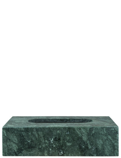Conceal your cardboard tissue box in a refined way with the MARBLE tissue cover in green marble. Solid and elegant, it brings a sense of luxury to bathrooms, kitchens or living spaces. Made from natural stone, the green marble is characterised by its unique patterns and colour variations, making each piece truly one of a kind.