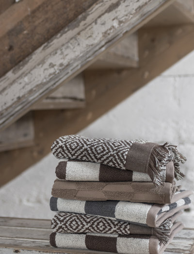 Upgrade your bathroom with an elegant and graphic touch with the RETRO towel from Mette Ditmer. The towel has a beautiful brown and off-white colour combination, highlighted by a light brown border. The subtle details, such as the orange strap and label, add character to your decor.