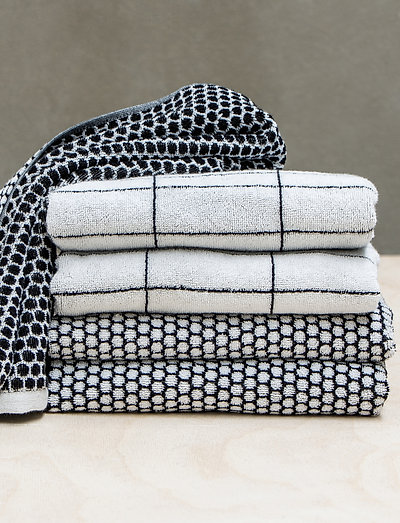 The TILE STONE towels have a graphic design with flimsy off-white stripes that are reminiscent of a classic tile pattern. TILE STONE has a graphic expression with undertones of a retro element that complements bathrooms in a simplistic, Nordic style. Mix and match with towel design GRID and create dynamism by mixing the graphic patterns. TILE STONE is woven of 100% cotton, OEKO-TEX® 100-certified, which gives the towels a unique softness that is maintained wash after wash.