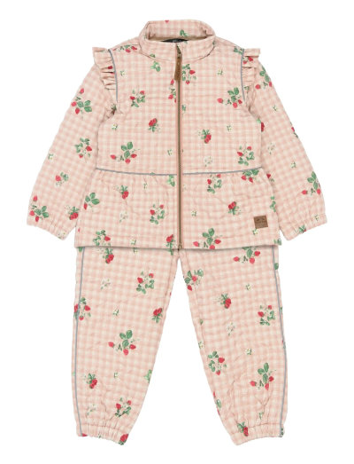 WasserabweisendStylish Thermal+ set from mikk-line, designed a feminine AOP (all-over print) and frills for girls. This insulating thermal set has waterproof fabric and BIONIC-FINISH® ECO coating, but the seams are not waterproof. The fabric is wear-resistent, and it has a moderate breathability. All in all, it is a great outerwear choice for girls to stay warm, dry, and enjoy outdoor adventures in-between seasons with chilly and wet weather. The set also features a name tag with room for more than one name, so please pass it on and let it be re-loved.EXCELLENT & FUNCTIONAL DESIGN- AOP (all-over printed). - Frills.- Smooth-running YKK zipper with pull tab.- Chin protection (zipper garage).- Elasticated cuffs. - Adjustable waistband.- Strong reflective details. - Name tag.TECHNICAL ADVANTAGES- Waterproof fabric (water pressure 3.000 mm). - BIONIC-FINISH® ECO coating. - Windproof.- Insulating. - Breathability at 3,000 g/m2/24hrs.- Wear-resistant material. - Easy-to-clean.- Dirt repellent. - Nickel-free.- 100% polyester. - OEKO-TEX® Standard 100