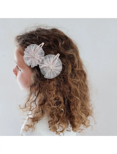 Mit einem Satinbanddetail und einem glitzernden Stern in der Mitte einer Tüllrosette verleihen diese Clic Clacs jeder Frisur einen Hauch von Glanz. Dieses Set aus zwei Haarschmuckstücken ist perfekt für Kinder von 3-8 Jahren.