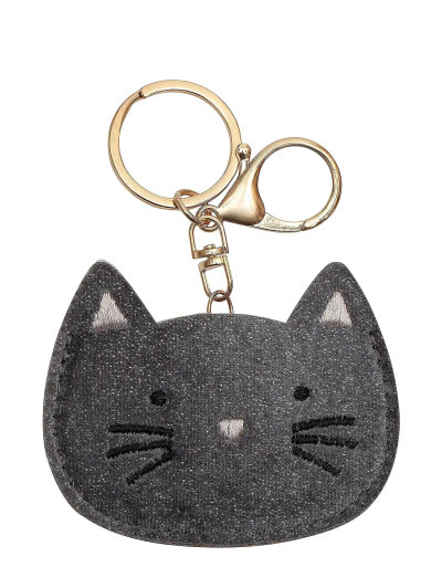Dieser lustige Schlüsselanhänger in Katzenkopfform mit gestickten Details, spitzen Ohren und Schnurrhaaren. Eine einfache Möglichkeit, Rucksäcken und Schlüsseln Persönlichkeit zu verleihen.