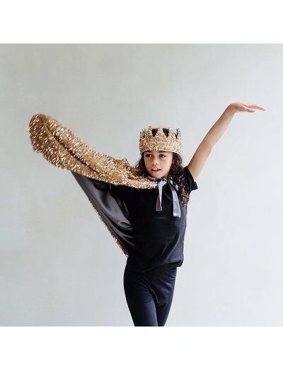 Delightful and soft padded reversible crown with shiny grey satin on one side and golden sequins on the other.Adjustable satin ribbon tie, making the size suitable head sizes and ages.