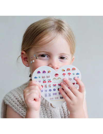 Mit diesen 25 Paar Aufklebe-Ohrringen lassen sich festliche Akzente setzen, ohne dass Ohrlöcher erforderlich sind. Einfach aufkleben und mit warmem Wasser wieder entfernen. Mit Regenbögen, Sternen und anderen niedlichen Formen.