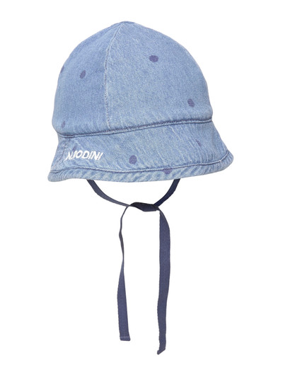 Dieser Sonnenhut aus Bio-Baumwoll-Denim bietet angenehmen Schutz. Er verfügt über ein Allover-Punktmuster und einen Bindebandverschluss für einen sicheren Sitz.