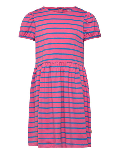 Dieses Kleid aus weicher, gestreifter Bio-Baumwolle mit einem Hauch von Elastan bietet eine bequeme und flexible Passform. Die kurzen Ärmel und das klassische Design machen es zu einer vielseitigen Wahl für den Alltag.