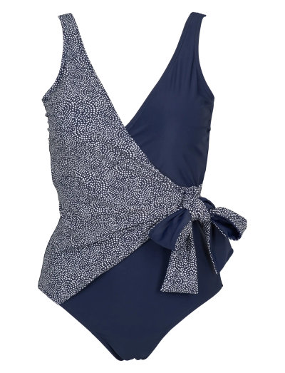 Dieser Badeanzug im schmeichelhaften Wickeldesign bietet sowohl Komfort als auch einen Hauch von Eleganz für Ihren Strand- oder Pool-Look. Er verfügt über ein integriertes Gummiband, das die Brust bequem stützt und eine gute Passform für verschiedene Körpertypen gewährleistet. Das einzigartige Design verleiht einer schlichten Silhouette eine coole Note.