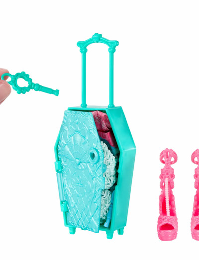 4+ JahreReveal a Monster High doll, unlock accessories, and take the trip of an unlifetime with Skulltimate Secrets, Destination: Gore-geous Oasis! Kids can discover the secret to a dream scare-cation with this spooky set, which includes over 19 surprises -- but first, they must find the three keys that will, one-by-one, unlock all the travel-themed clothing and accessories! Each sold separately, subject to availability. Fully articulated. Dolls cannot stand alone. Colours and decorations may vary.