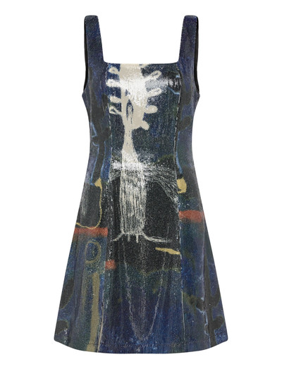 Elegante Kunst trifft auf schimmernde Pailletten in diesem auffälligen Kleid. Es ist figurbetont geschnitten und verfügt über einen raffinierten Schlitz an der Seite sowie einen Reissverschluss auf der Rückseite.