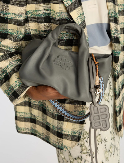 Diese Tasche aus weichem Leder verfügt über ein geräumiges Hauptfach und eine kleine Seitentasche zur Organisation. Sie ist mit kurzen Griffen und einem abnehmbaren Schultergurt ausgestattet, was vielseitige Tragemöglichkeiten bietet. Ein Magnetverschluss sorgt für einen sicheren Verschluss.