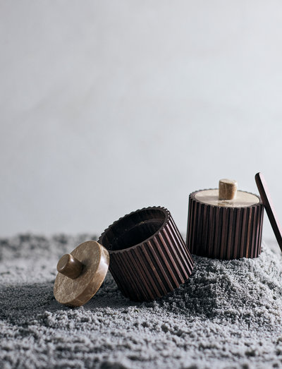 The beautiful dark jar with lid from Yami from the Yami series is made of carbonized ash wood, which gives the set the dark color that is iconic for the series.