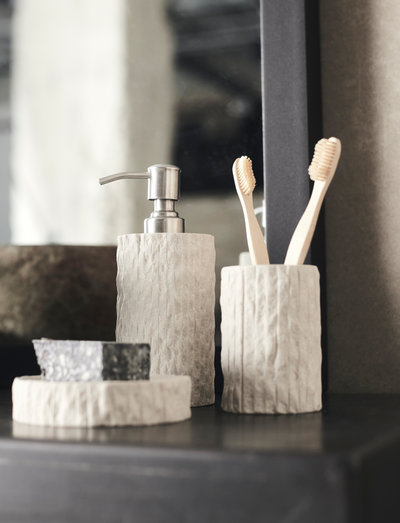 Kama is created with a fluted and rustic surface that pushes the boundaries of bathroom accessories. The series' organic shapes and charming details add personality and soul to the bathroom, and together with a natural and calm shade, the series achieves a solid and sculptural expression.