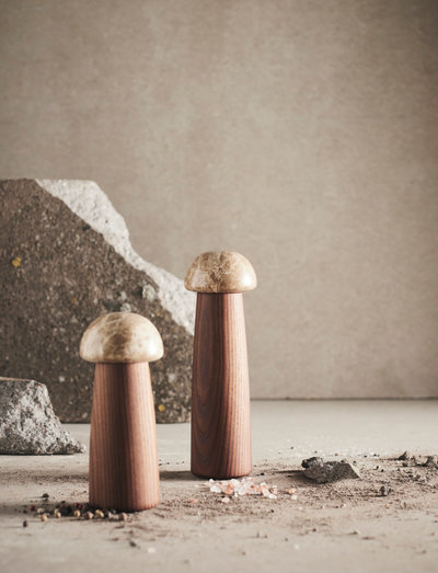 The salt and pepper mill are made of carbonized ash wood, which gives the set the dark color that is iconic for the Yami series.