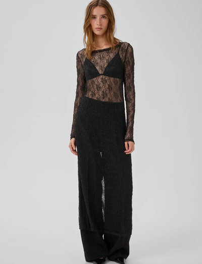 Dieses langärmlige Kleid aus zarter Spitze verleiht jedem Ensemble eine elegante Note. Der U-Boot-Ausschnitt sorgt für ein raffiniertes Detail und macht es sowohl für besondere Anlässe als auch für einen gehobenen Alltagslook geeignet. Die fließende Silhouette sorgt für eine bequeme und schmeichelhafte Passform.