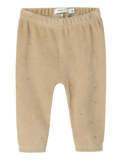 Diese weichen und dehnbaren Leggings sind eine bequeme Grundlage für jedes Outfit. Der Veloursstoff hat einen sanften Glanz und eine einzigartige Textur. Der elastische Bund sorgt für eine gute Passform, während der Allover-Glitzerdruck einen Hauch von Glanz verleiht.