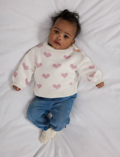 Kreieren Sie das perfekte Outfit für Ihr Kind mit diesem Strickpullover, der einen bequemen und trendigen Look bietet. Jacquard zeichnet sich durch sein detailliertes Strickmuster aus, das eine strukturierte Textur erzeugt. Er hat lange Ärmel, einen O-Ausschnitt, Rippbündchen und einen Knopfverschluss.
