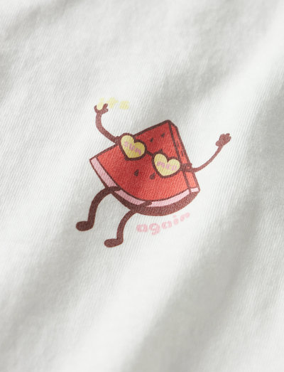 Dieses lockere T-Shirt ist perfekt für den Alltag. Es hat einen süßen Erdbeerprint auf der Vorderseite und eine entspannte Passform für Komfort.