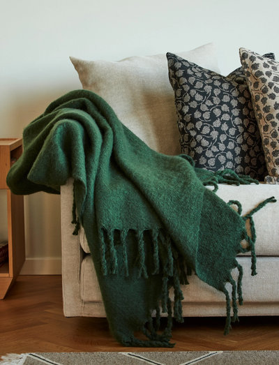 Wonderfully luxurious and voluminous blanket with decorative long fringes at the edges, lovely to wrap yourself in or why not decorate the sofa with this beautiful plaid.