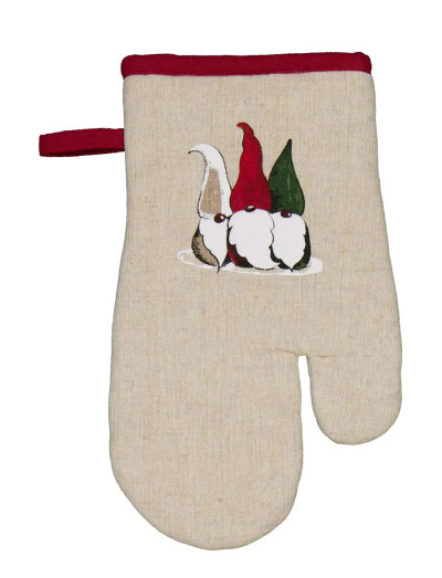 Beautiful classic oven glove, the fabric that has a nice smooth linen texture and a beautiful print of elves. The oven mitt is made of 100% recycled material because we want to protect our nature.