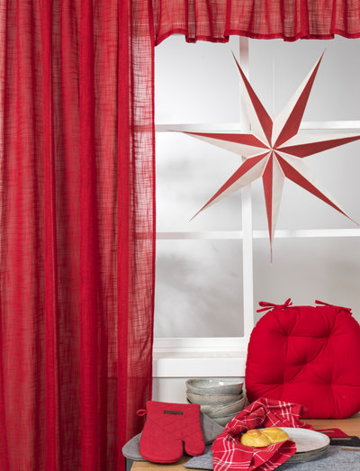 Pelmet in a lovely "dry" linen structure and semi transperant. The curtain has multifunction band suspension, 45x250 cm. 100% Polyester