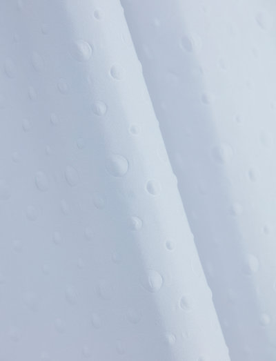 Wonderful shower curtain with a relief pattern of beautiful molded bubbles, which gives a beautiful soft pattern and repels the water drops, packed in a stylish bag of the same fabric, hanging hooks included.