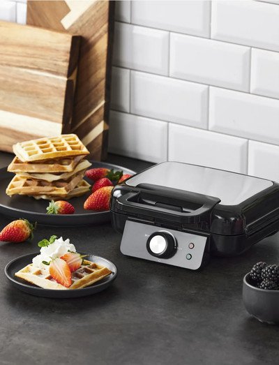 • Interchangeable plates for toast, Belgian waffles and grilling/panini