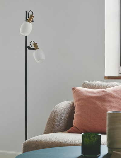 Arild is a series of lights in a modern design with an industrial touch. The white, round, matte opal glass shade is elegantly complimented by brownish brass details. You can easily adjust the lamp heads for a directional light.