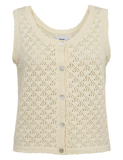 Dieses gestrickte, ärmellose Top hat einen Knopfverschluss und eine weiche und bequeme Qualität. Die Knöpfe verleihen diesem vielseitigen Stil einen klassischen Ausdruck.