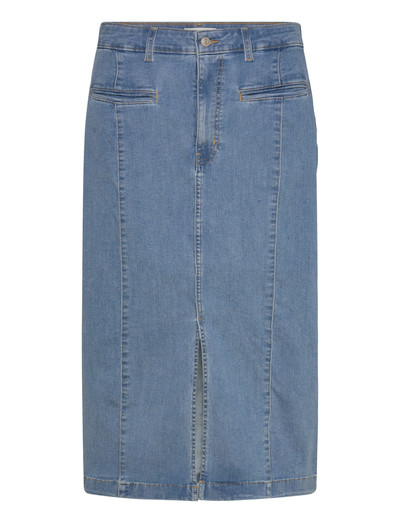 Ein klassischer Jeansrock ist eine vielseitige Ergänzung für jede Garderobe. Mit einer Midi-Länge, Knopf- und Reissverschluss und nicht-funktionellen Vordertaschen bietet dieser Rock sowohl Stil als auch Komfort. Das Mid-Wash-Finish verleiht ihm einen entspannten, eingetragenen Look, perfekt für verschiedene Anlässe.