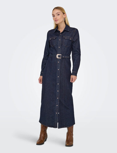 Dieses langärmlige Kleid aus strapazierfähigem Denim verfügt über eine Knopfleiste und Brusttaschen für einen klassischen Look. Der dazugehörige Gürtel betont die Taille, während der Hemdkragen einen Hauch von Eleganz verleiht. Es ist perfekt für das ganze Jahr und kann im Sommer mit Turnschuhen und einer Jacke oder im Winter mit Strumpfhosen und Stiefeln getragen werden.