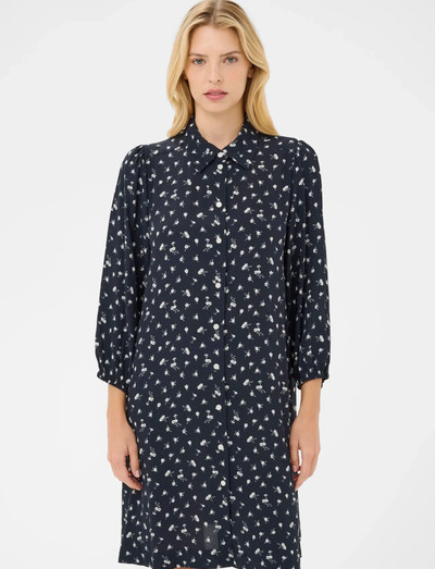 Eine klassische Silhouette definiert dieses langärmlige Hemdkleid und macht es zu einer vielseitigen Ergänzung für jede Garderobe. Der zarte Druck sorgt für einen Hauch von optischem Interesse, während die Knopfleiste vorne eine variable Styling-Option bietet.