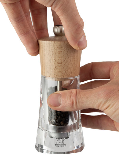 The Peugeot Oleron pepper grinder invites you to enrich your discovery of flavour by experimenting with non-conventional pepper varieties that will surprise your senses. The transparent body gives you an insight into how the full potential of each peppercorn is released and the natural wooden head gives this pepper grinder plenty of poise.