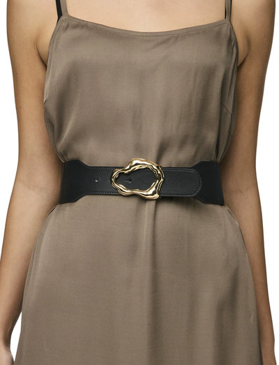 Dieser elastische Gürtel aus beschichtetem Stoff sorgt für einen coolen Look. Er lässt sich sowohl mit Haken und Öse als auch mit einer Dornschließe schliessen. Er ist perfekt, um die Taille zu betonen, und eignet sich besonders gut für Festival-Looks.