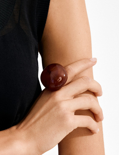 Setzen Sie ein Statement mit diesem auffälligen, von Retro inspirierten Ring. Das klobige Acryl-Design verfügt über einen satten Bernsteinton, der Wärme und Tiefe ausstrahlt. Es ist das perfekte Stück, um Ihren einzigartigen Stil zu präsentieren und jedem Outfit einen Hauch von 90er-Jahre-Coolness zu verleihen. Dieser aus recycelten Materialien gefertigte Ring bietet einen modischen Look. Die verstellbare Größe sorgt für eine bequeme Passform.