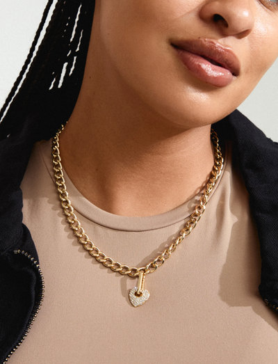Verleihen Sie jedem Look einen Hauch von Glanz mit diesem Herzanhänger. Das vergoldete Finish sorgt für ein warmes Leuchten, während die Kristall Details das Licht einfangen und dafür sorgen, dass Sie überall strahlen.