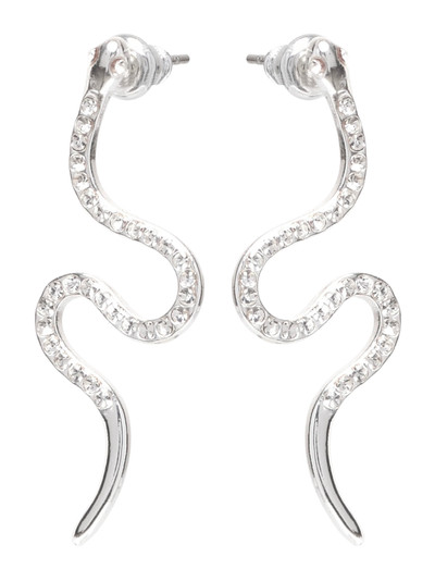 Die silberfarbenen Schlangenohrringe setzen ein einzigartiges Statement mit funkelnden Kristallen, die die Drehungen und Kurven des Designs hervorheben. Diese Ohrringe zeigen eine verführerische und geheimnisvolle Ästhetik, wobei sich die Schlangen wunderschön unterhalb der Ohrläppchen winden und eine verführerische Note verleihen.