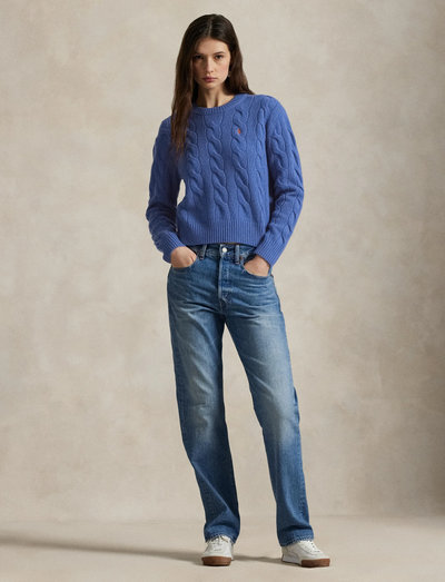Ein klassisches Zopfmuster-Design wertet diesen Pullover mit Rundhalsausschnitt auf. Er ist aus einer Mischung aus Wolle und Kaschmir gefertigt und verfügt über das charakteristische gestickte Pony auf der Brust und eine gerade Passform, die bis zur Hüfte reicht.